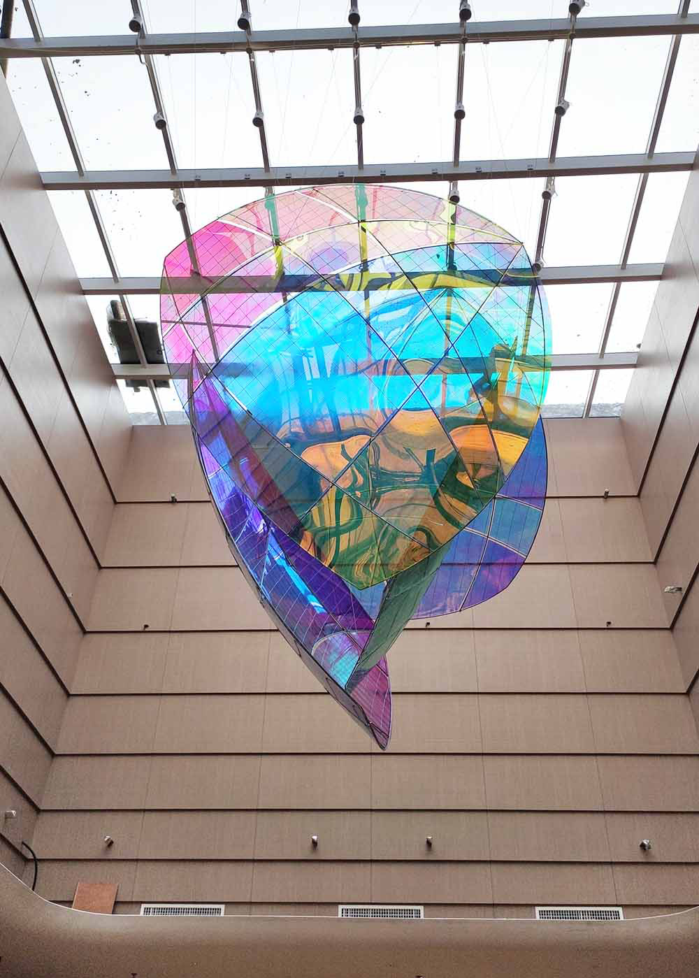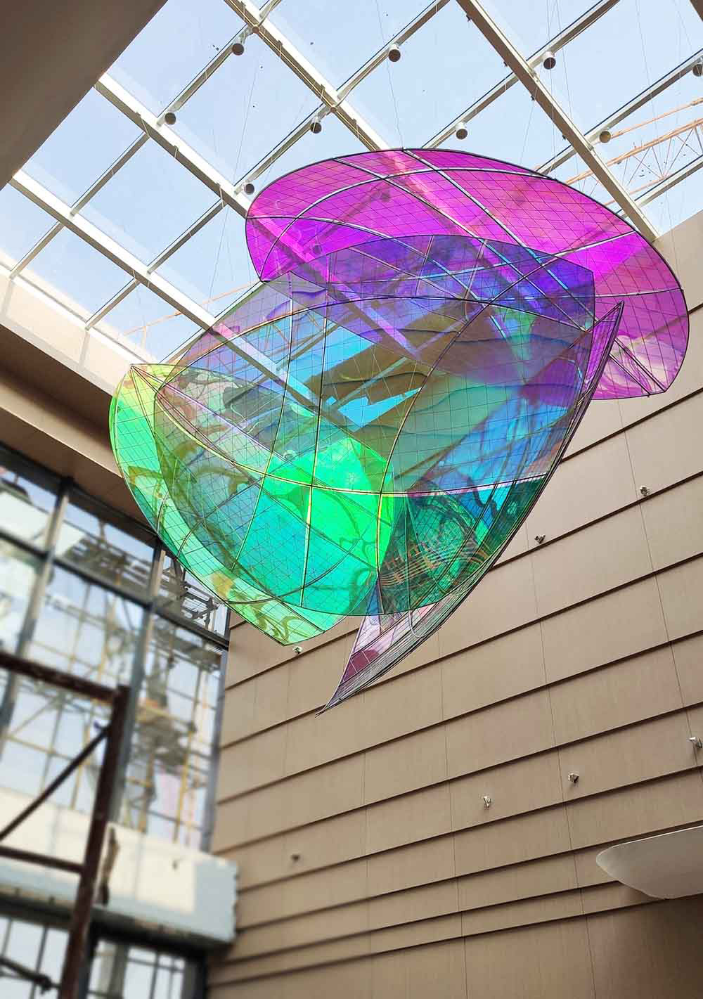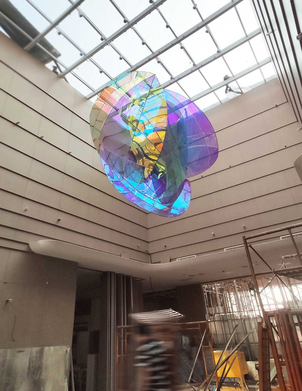 This custom acrylic chandelier seamlessly blends contemporary design with optical aesthetics, featuring four high-transparency colored acrylic panels meticulously assembled into a striking three-dimensional wrapped form. Each acrylic sheet is specially treated to ensure pure, vibrant color transmission, creating a gem-like brilliance when illuminated. Whether under natural light or integrated LED lighting, the chandelier refracts dreamy gradient hues that shift dynamically with the viewer’s perspective, offering an ever-changing visual spectacle.